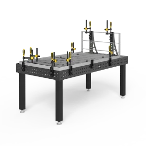 Thanks to the boreholes in our welding tables, an extremely flexible and versatile clamping surface is created. This gives you the opportunity to quickly and easily produce a wide variety of constructions using squares, stops and clamps. The excellent precision of our welding tables enables you to position the components exactly and thereby achieve very good repeatability. We offer a perfectly coordinated modular system for every application, with which you can work conveniently and efficiently.