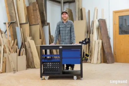 With the Siegmund Workstation you get a low-cost workplace in a small area with plenty of storage space in the usual Siegmund quality. All the accessories are compatible with the Workstation's perforated plates, allowing you to carry out all kinds of welding, clamping or assembly work on them. Regardless of whether you work with wood or build and weld metal constructions, the Workstation is as versatile as your ideas and tasks.